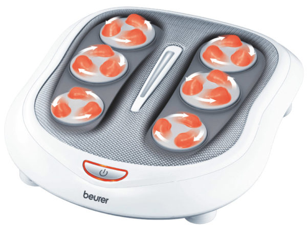 Massage bien-être des zones de réflexe des pieds. Avec fonction de chaleur activable. 2 vitesses de massage. Affichage des fonctions grâce à des LED de couleur sur le bouton. Surface en maille respirante confortable.