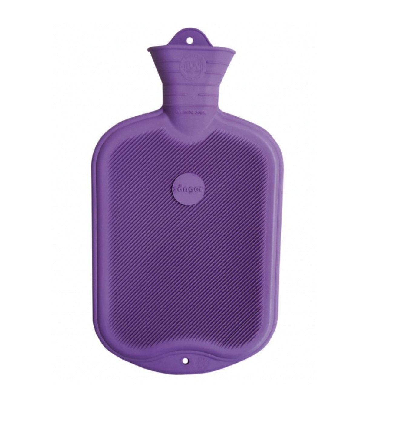 Bouillotte 100 % caoutchouc naturel , avec lamelle sur un côté.