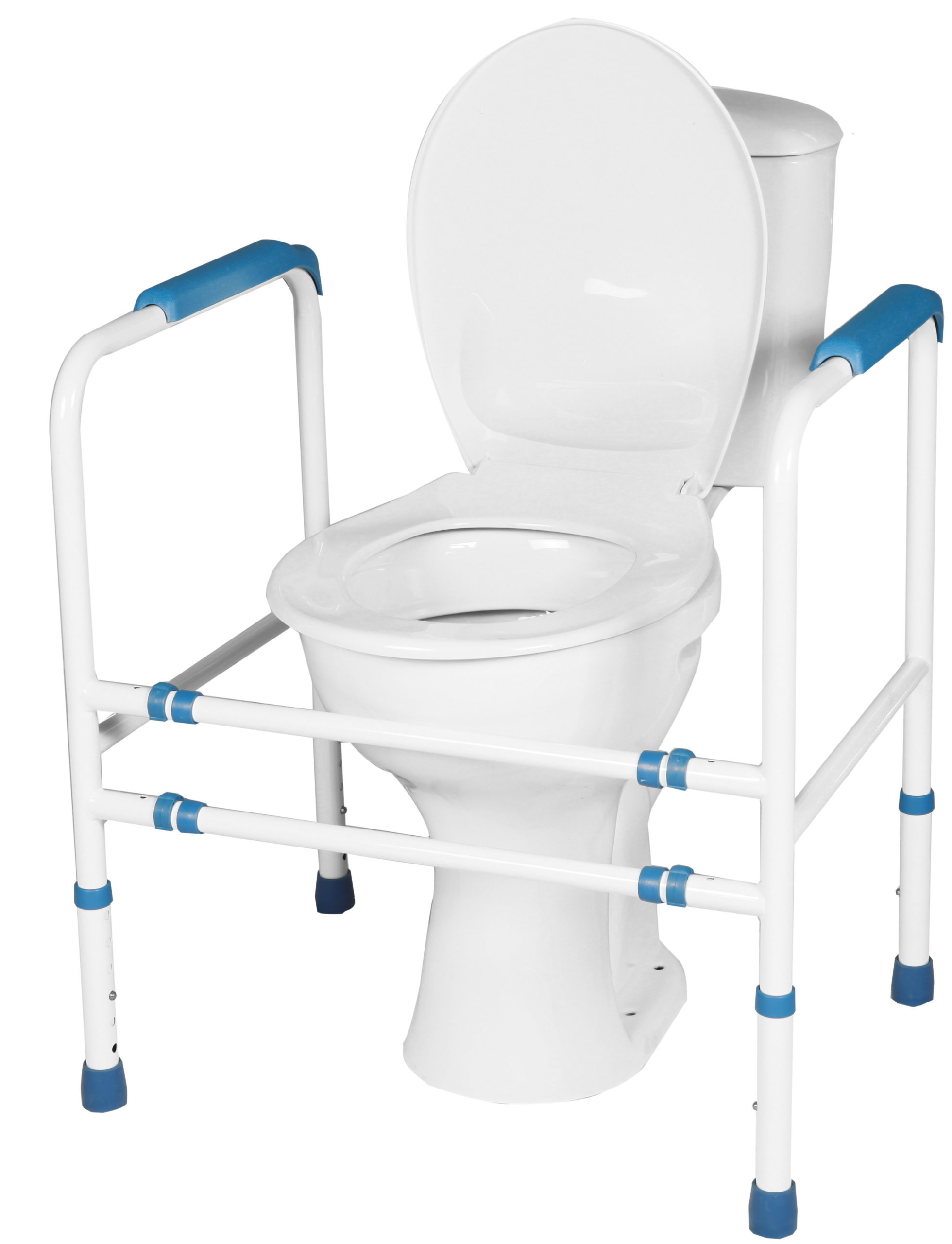 Fabriqués en aluminium ou acier et réglables en hauteur comme en largeur, les cadres de WC servent d’appui pour aider aux transferts.