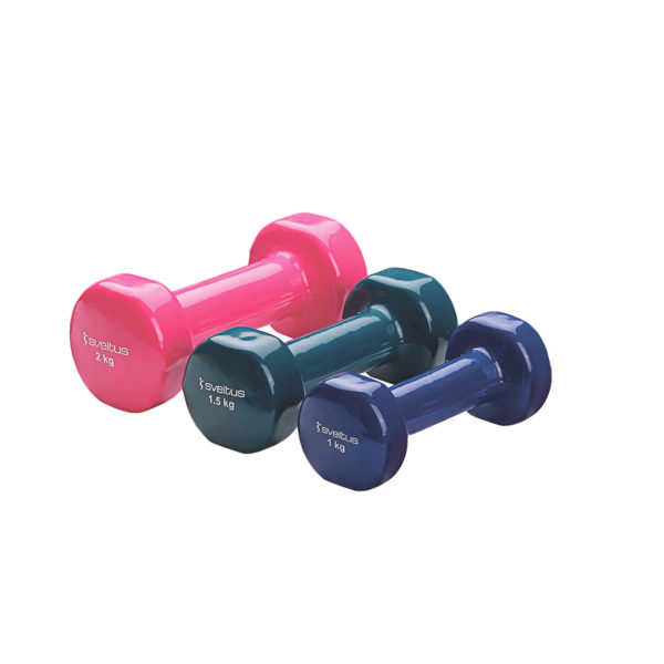 Haltères en métal enrobés vinyle. Finition brillante. Toucher lisse et agréable. Permettent de travailler toute la partie supérieure du corps : bras, avant-bras, épaules, trapèzes, dorsaux, pectoraux.