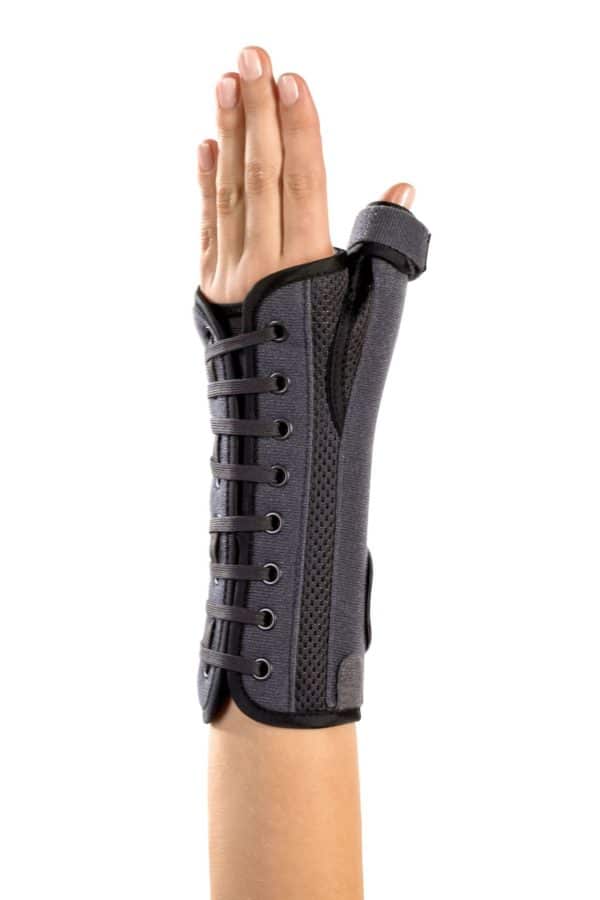 Tendinite, syndrome du canal carpien et rhizarthrose sont des lésions combinées susceptibles de provoquer d’importantes douleurs, aussi bien dans le poignet que le pouce. ManuPlus Support peut y remédier. L’attelle intérieure et le montant extérieur permettent aussi bien de stabiliser que d’immobiliser le poignet et le pouce. Les douleurs sont ainsi soulagées et la guérison est stimulée. La fermeture autoagrippante par laçage permet l’ajustement personnalisé de l’attelle ainsi qu‘un positionnement optimal.