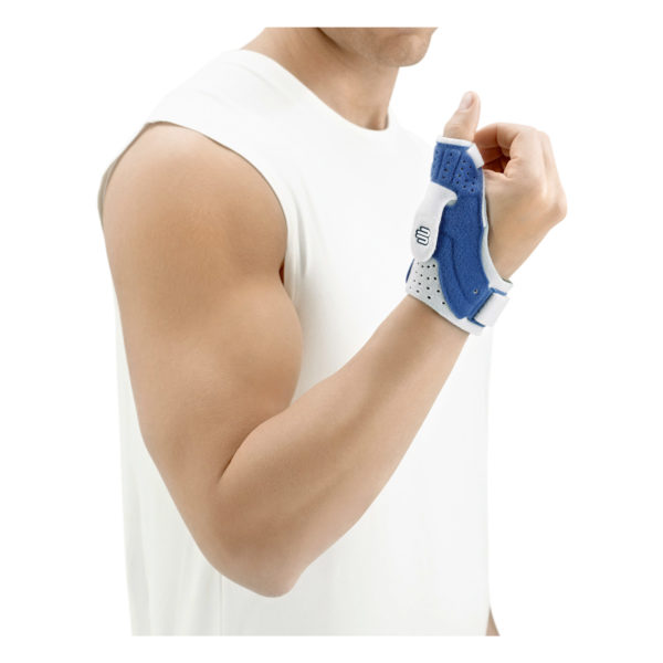 Son renfort en aluminium adaptable immobilise le pouce et décharge les ligaments latéraux. Cela soulage la douleur et accélère le processus de guérison. Facile à mettre, même à une seule main. Grand confort de port. Droite ou gauche.