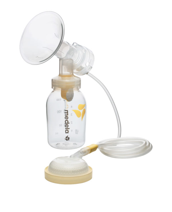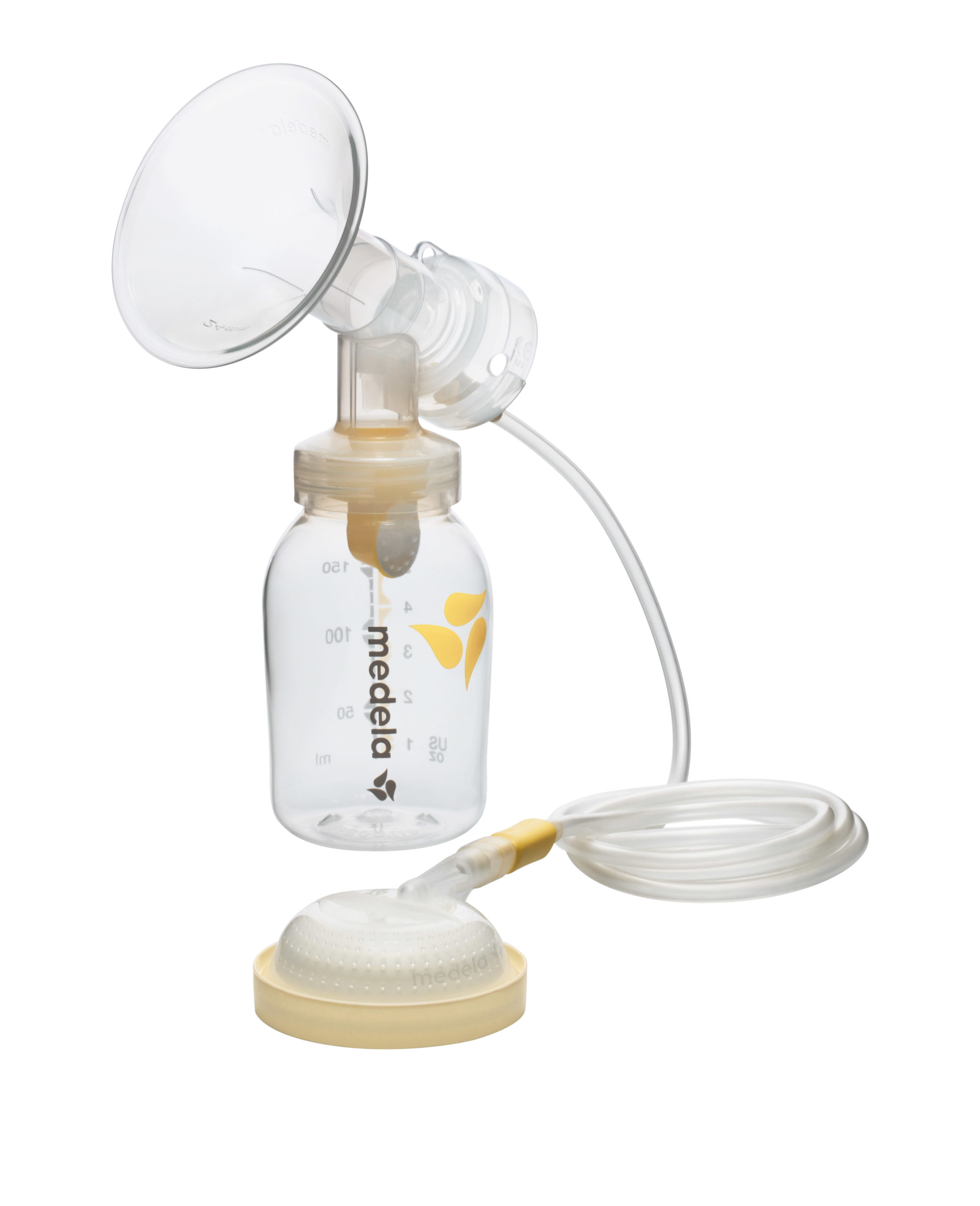 Contient : une téterelle de 24 mm et un biberon de 150 ml, avec un couvercle et un insert, une valve complète avec membrane, un capuchon pour membrane, une membrane protectrice et un tuyau en silicone.