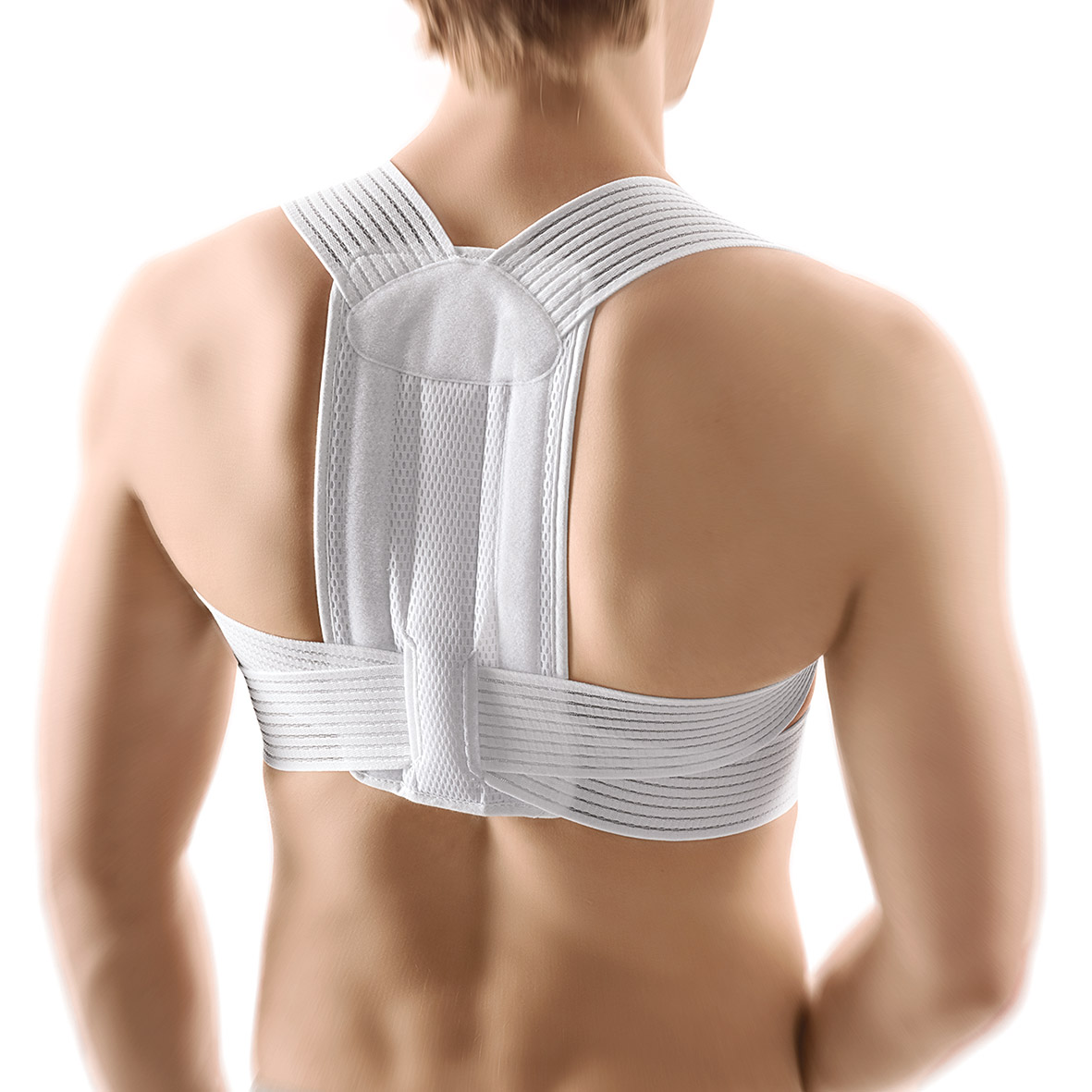 Soutien élastique servant au redressement actif de la colonne vertébrale thoracique, matériel à respiration active et à bonne tolérance cutanée, design mince, restant discret.