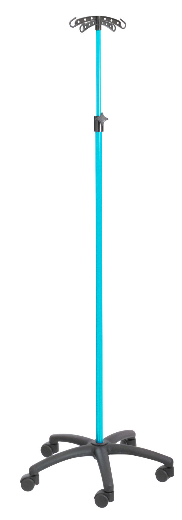 Doté d’un socle à roulettes, les tiges à 4 crochets supportent les poches à perfusion et à nutriments. Facilement ajustable.