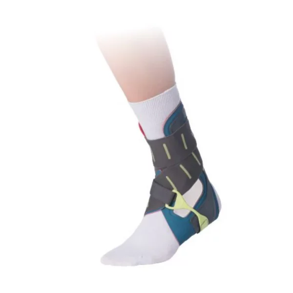 La coque extérieure anatomique préformée offre une grande rigidité et une stabilisation efficace contre une éventuelle torsion. Les coussinets VACO12 intégrés dans un tissu maillé assurent un ajustement optimal et une bonne circulation de l’air autour de la cheville, et permettent un mouvement de déroulement du pied le plus normal possible. Les mouvements de l’articulation dans le plan de supination et de pronation doivent être empêchés et le glissement du talus doit être restreint. Les mouvements dorsaux/plantaires restent possibles et permettent de conserver un déroulement normal du pied pendant la marche